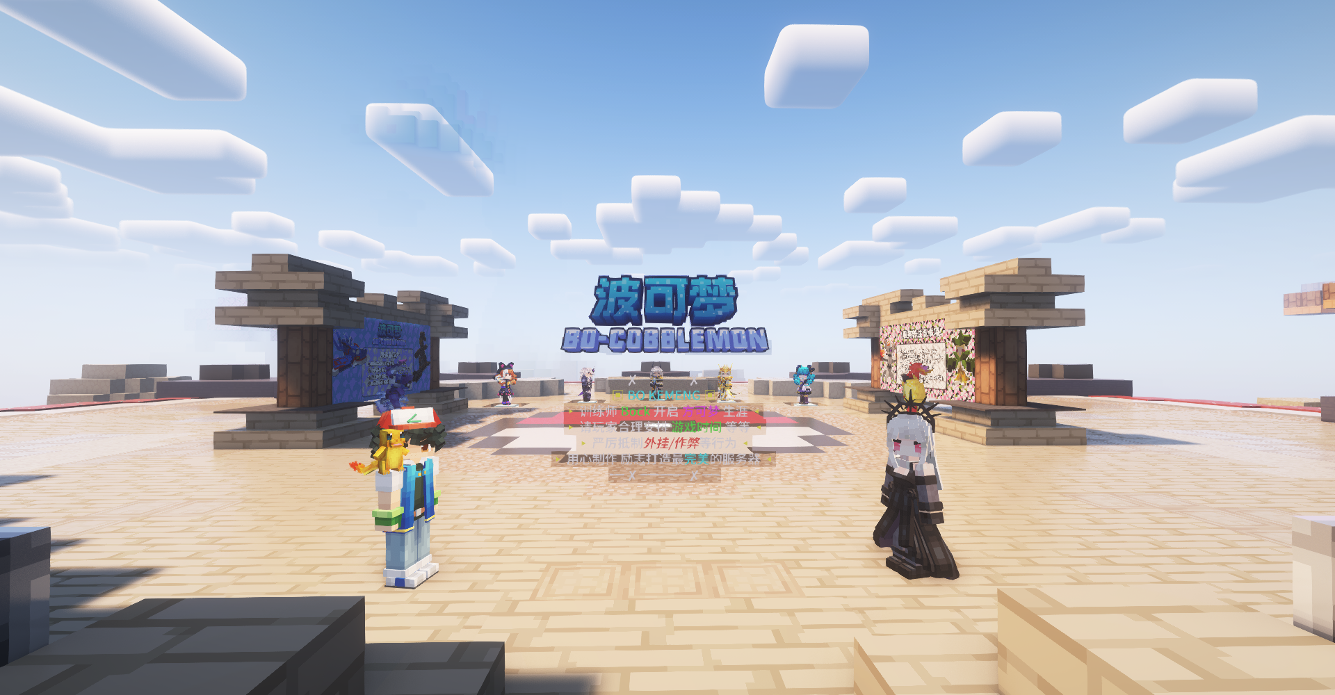 这里是波可梦服务器的心脏地带,建筑风格简约大气,功能区域布局清晰。你可以在此与来自五湖四海的玩家畅快交流,领取丰富任务开启冒险,或是参与热闹的服务器活动。每一处细节都彰显着温馨和谐的氛围,是你开启像素世界奇遇的第一站。